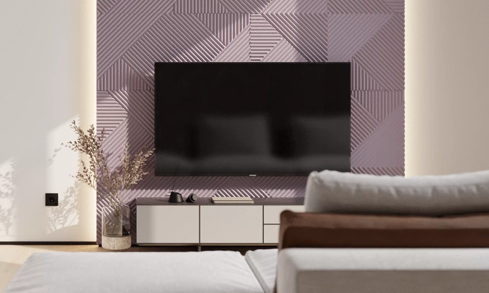 3Д лиловая стеновая панель из МДФ Ликорн Пирамида 500х500х8 мм/4 шт