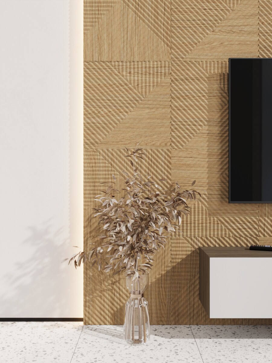 3Д Орех-светлый стеновая панель из МДФ Ликорн Пирамида 500х500х8 мм/4 шт