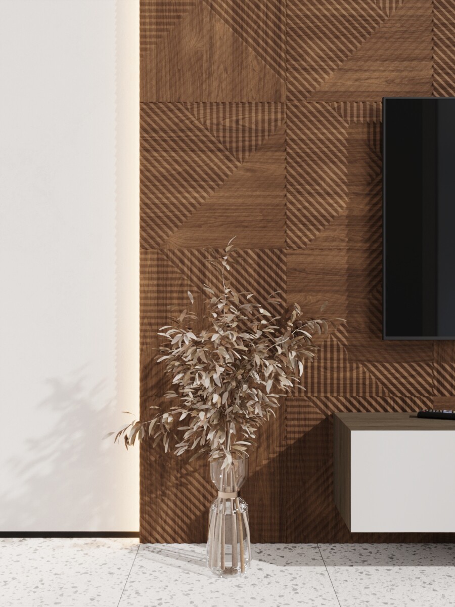 3Д Орех-темный стеновая панель из МДФ Ликорн Пирамида 500х500х8 мм/4 шт