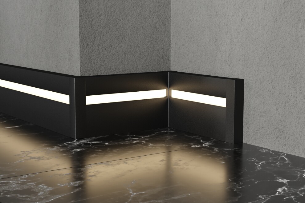 ALP-G80-LF Fezard плинтус алюмиевый с подсветкой 80х15 мм