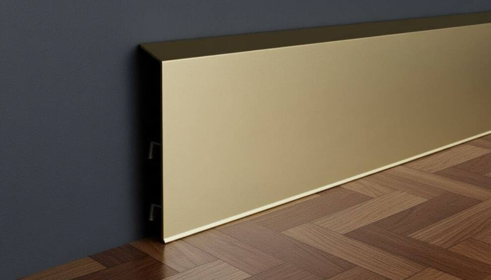 Плинтус Евротрим (Россия) изготовленный из анодированного алюминия, имеет различную высоту и различные отделки поверхности. Алюминиевый плинтус, созданный в духе минимализма, позволяет создать четкое и стильное соединение между стеной и полом. Благодаря своему выступающему краю, он обеспечивает идеальное закрытие периметрической зоны, это особенно полезно для расширяющихся полов, закрывая минимальные промежутки периметрического расширения.