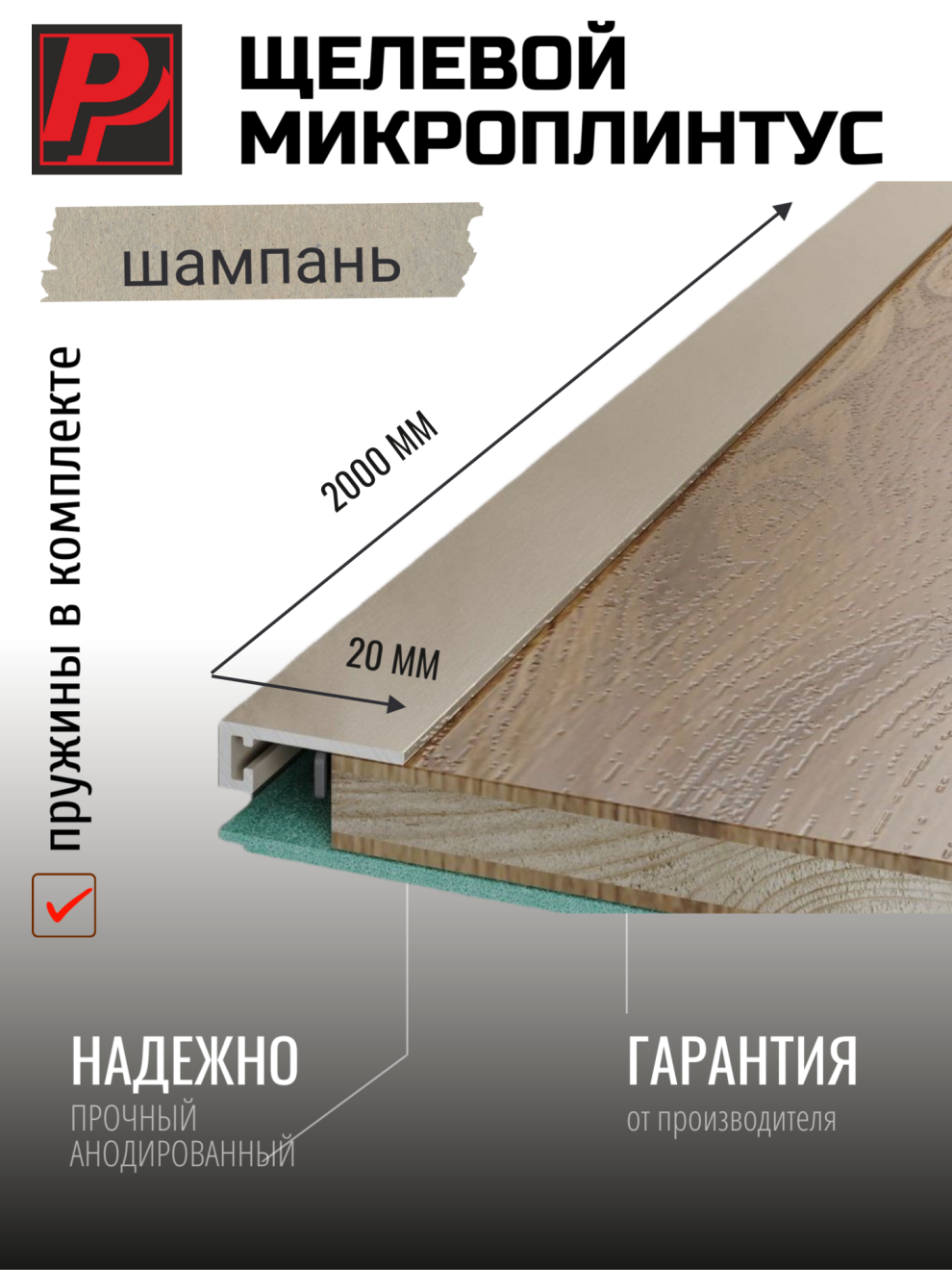 Микроплинтус 20 мм шампань алюминиевый анодированный 20*6
