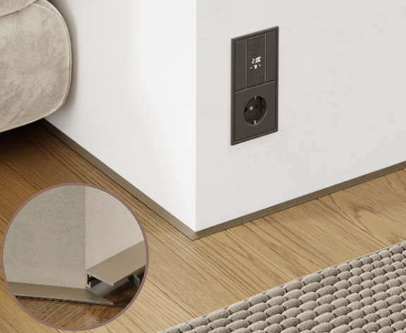Микроплинтус щелевой закрывает технологический шов укладки чистового пола до 20 мм. Плинтус Minimal не выступает от стен и подходит для установки со скрытыми дверьми. Мебель можно устанавливать вплотную к стене. Упрощённая альтернатива скрытого плинтуса, но не требует подготовительных работ по монтажу.