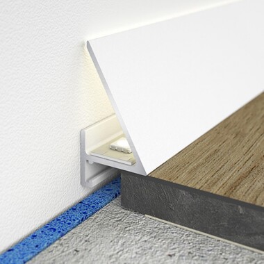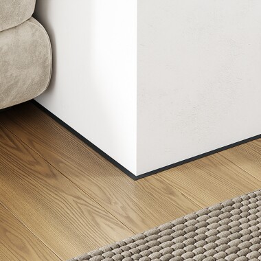Идеальность интерьера "без плинтуса" заключается в использовании щелевого плинтуса. Скрытый микроплинтус PRO DESIGN mini, Framedoors, Laconistiq для пола позволяет установить его вровень со стеной, создав единое целое. L-образный микроплинтус для ламината скрывает переход между стеной и напольным покрытием, визуально расширяет помещение, освобождает пространство от ненужного визуального избытка и придает монументальность внутреннему оформлению. Существует несколько популярных способов установки используя пружины: собственное свечение, световой зазор или стандартная модель, наполняющаяся в стену. Это позволяет выбирать оригинальные интерьерные решения для любого помещения. Вы получаете простое и лаконичное решение, гармонично сочетающееся с любым дизайном, обращая на себя ненавязчивое внимание. Такой плинтус идеально дополняет скрытые двери, а помещение может быть оформлено с близким расположением с мебелью у стены.