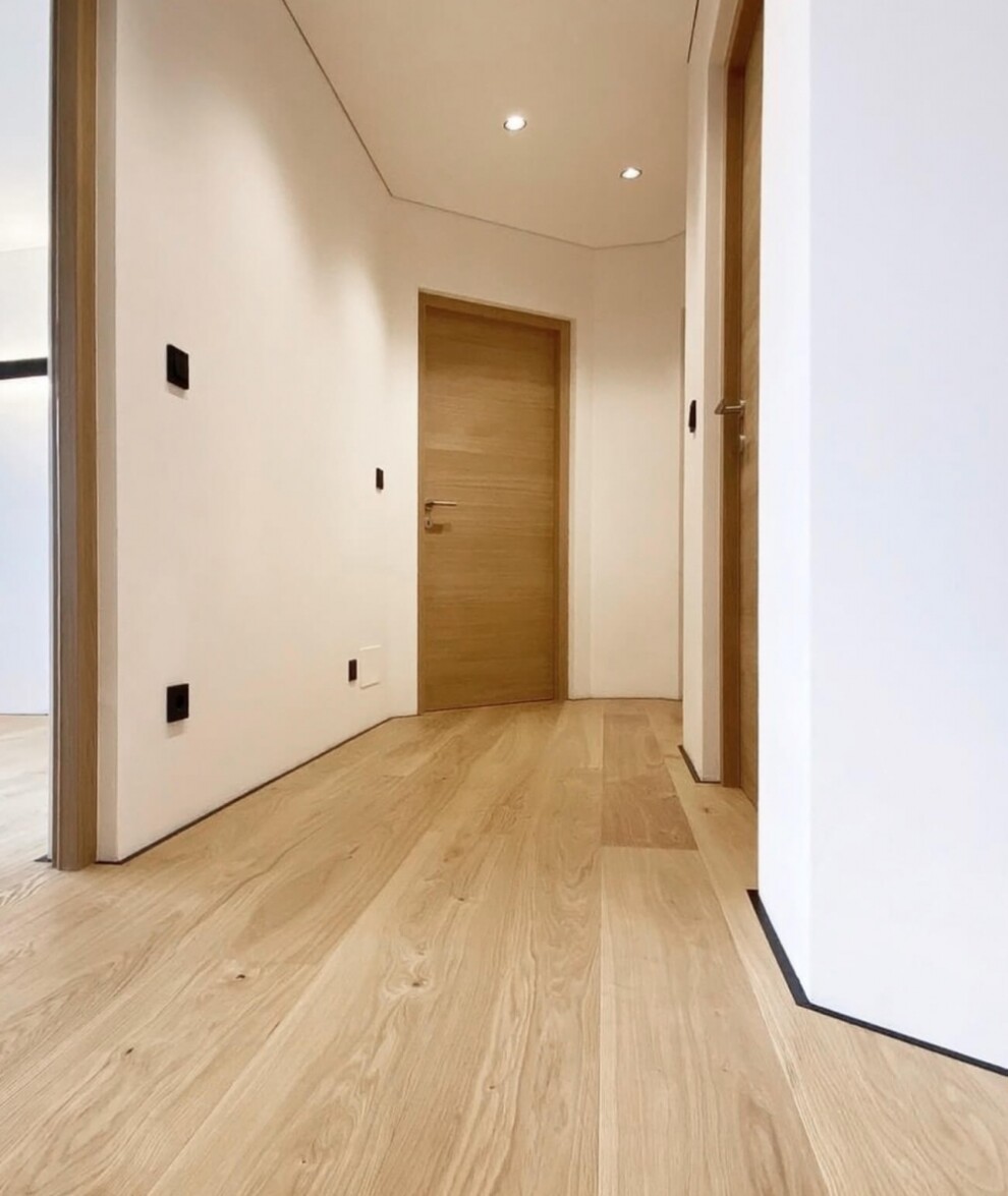 Щелевой плинтус шириной 16 мм создает сдержанную и инновационную отделку от напольного покрытия до стены, оконной рамы или лестничной ступени – идеально подходит для мест, где по строительным стандартам требуются соединительные и компенсационные швы.