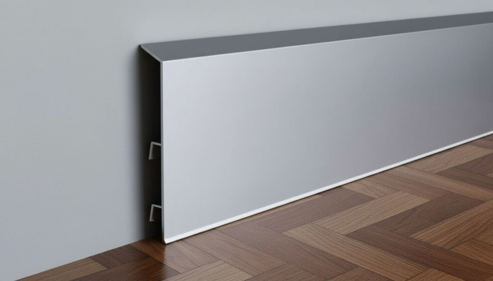 Плинтус алюминиевый ДЛ-70 на клипсе серебро анодированный 70х11 мм