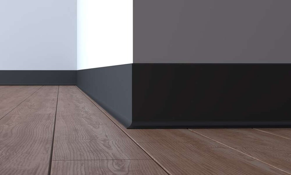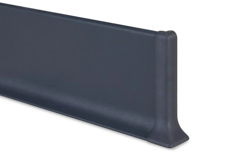 Высококачественный профиль плинтуса из анодированного алюминия. Черный алюминиевый плоский плинтус ПЛ изготовлен из металла в разной высоте 40, 60, 80 и 100 мм. Длина плинтуса 3 метра. Он обеспечивает дополнительную прочность, не трескается, не дает усадки с течением времени. Металлический плинтус легко крепится к стене с помощью подходящего клея.