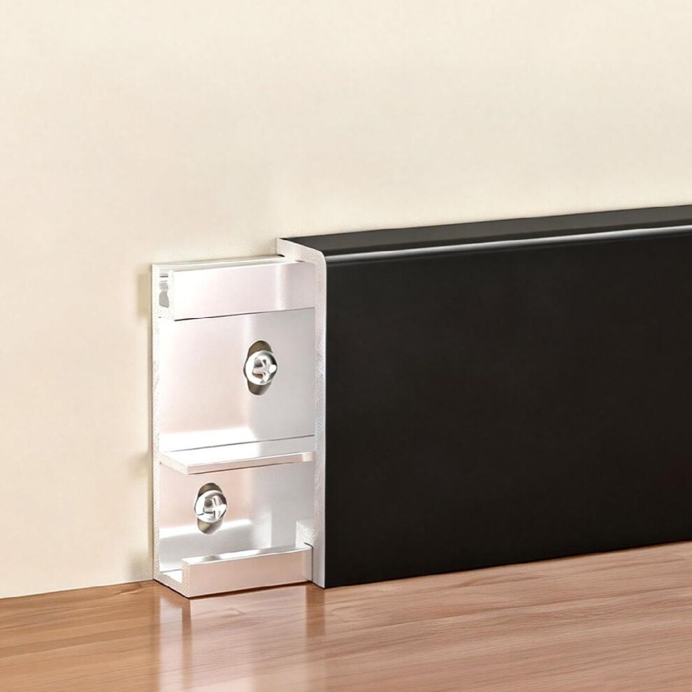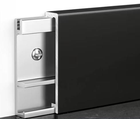 L-образный алюминиевый плинтус — чистая архитектурная линия без лишних деталей. Анодированное покрытие — стойкий, благородный матовый или сатиновый эффект. Безупречная геометрия: аккуратно закрывает технологический зазор между полом и стеной, подчеркивая периметр.- Материал с характером: анодированный алюминий устойчив к влаге, истиранию и ультрафиолету, не желтеет и не деформируется.- Монтаж на клипсе: скрытый крепеж без видимых саморезов, быстрая установка и возможность аккуратно снять плинтус при необходимости. Гармония с покрытием пола: ламинат, паркет/инженерная доска, SPC/ПВХ, керамогранит — универсальное решение для дома и коммерческих пространств. Цвет и фактура: черный муар — глубоко матовый и тактильный; белый и серебристый — легкость и свет; шампань и золотой — теплый акцент премиум-класса.