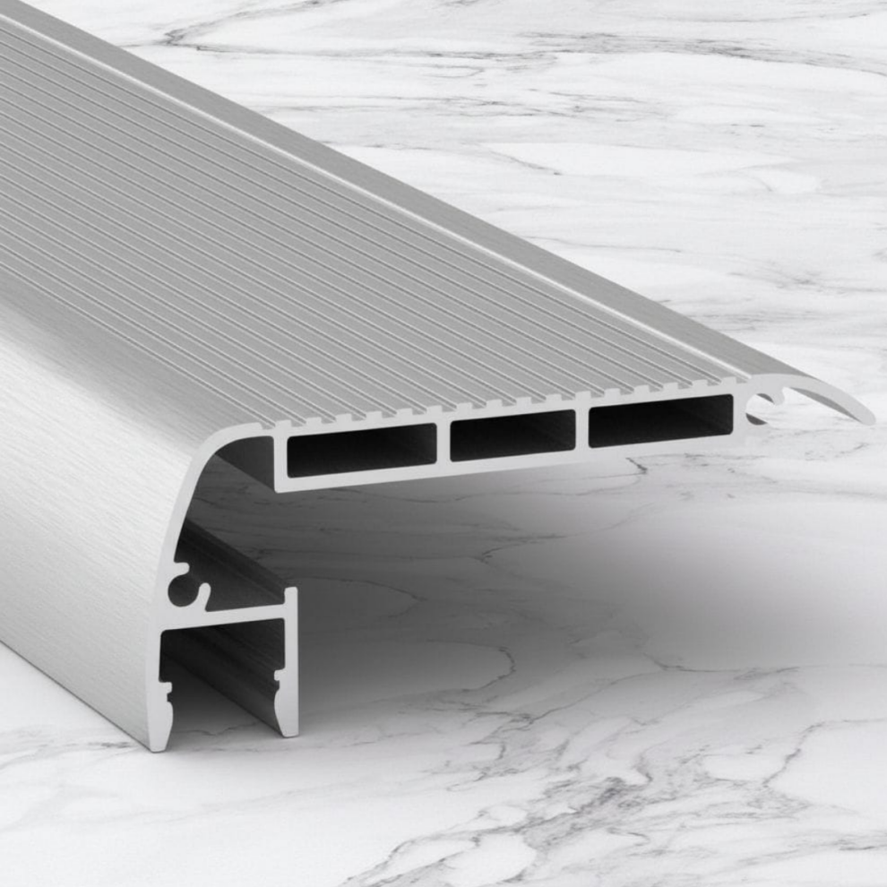 Алюминиевый порожек для ступеней с подсветкой серебристый длиной 2,7 м — это практичное и стильное решение для оформления кромок плиточных ступеней и подиумов. Изготовленный из высокопрочного алюминия, анодированный профиль обеспечивает защиту плитки от сколов и истирания, продлевая срок службы покрытия. Благодаря встроенному каналу для светодиодной ленты, профиль позволяет организовать равномерную и безопасную подсветку ступеней, что повышает безопасность и визуальную привлекательность лестничных конструкций. Матовая поверхность придает изделию современный и аккуратный внешний вид, гармонично вписываясь в интерьер.