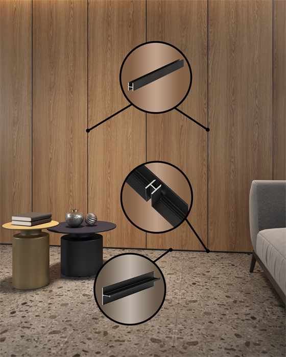 Теневая рейка для стен алюминиевая под панели и керамогранит LACONISTIQ DUAL 8,6х12х3000 мм