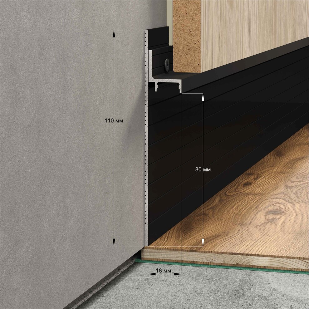 Теневой профиль регулируемый LACONISTIQ UNIVERSAL PANEL под подсветку черный анод 18,1х21,5х3000 мм